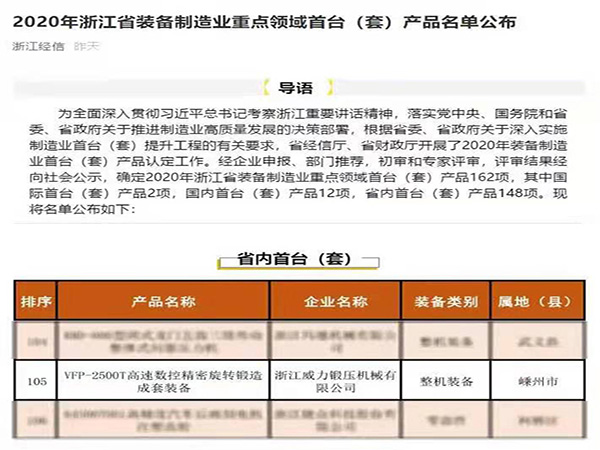 嵊州市一行領(lǐng)導(dǎo)督查浙江威榮精鍛有限公司2020重點建設(shè)項目2020-05-28 我公司2020年熱模鍛壓力機訂單量大,副市長對浙江威榮熱模鍛壓力機的發(fā)展歷程,目前的經(jīng)營狀況及未來的發(fā)展規(guī)劃給予了充分的肯定,同時也期待浙江威榮的熱模鍛能繼續(xù)深耕鍛壓行業(yè),為廣大客戶提供更多優(yōu)*的產(chǎn)品和服務(wù)!聯(lián)系人: